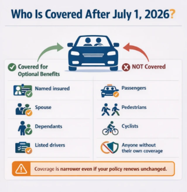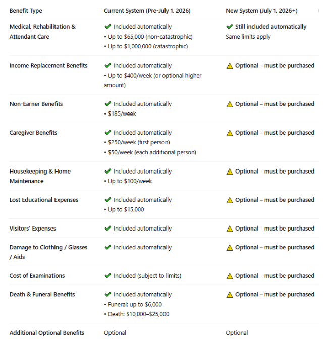 Major changes to accident benefits take effect in 2026. Speak with your insurance broker before renewing your policy to understand what coverage is no longer automatic and which optional benefits you may need to purchase to protect yourself and your family.